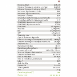 Le poêle à granulés Milano 12/12C est un modèle étanche et canalisable, conçu pour offrir une flexibilité maximale dans la répartition de la chaleur. Avec une puissance thermique nominale de 11,13 kW et un rendement pouvant atteindre 96 %, il assure un chauffage efficace et économique. Son réservoir de 25 kg permet une autonomie allant jusqu’à 31 heures. Le modèle Milano 12C est équipé de deux ventilateurs indépendants, permettant de chauffer plusieurs pièces en ajustant la puissance par zone. La sortie des fumées peut se faire par le dessus ou à l’arrière, facilitant ainsi une installation discrète contre un mur. Le tableau de contrôle tactile intégré et la télécommande incluse permettent une gestion simple et intuitive.