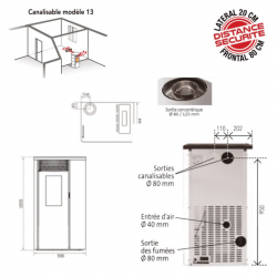 La sortie sur le dessus est concentrique et permet de mettre le poêle contre le mur (avec un mur anti feu ou plaque de protection) et assure une installation parfaitement esthétique.